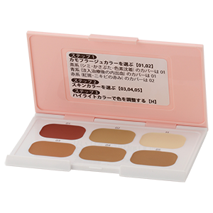 治療による傷の色味は、日々変化していきます。DTカモフラージュコンシーラーは、日々変わる治療痕の色に6色のカラーで対応します。