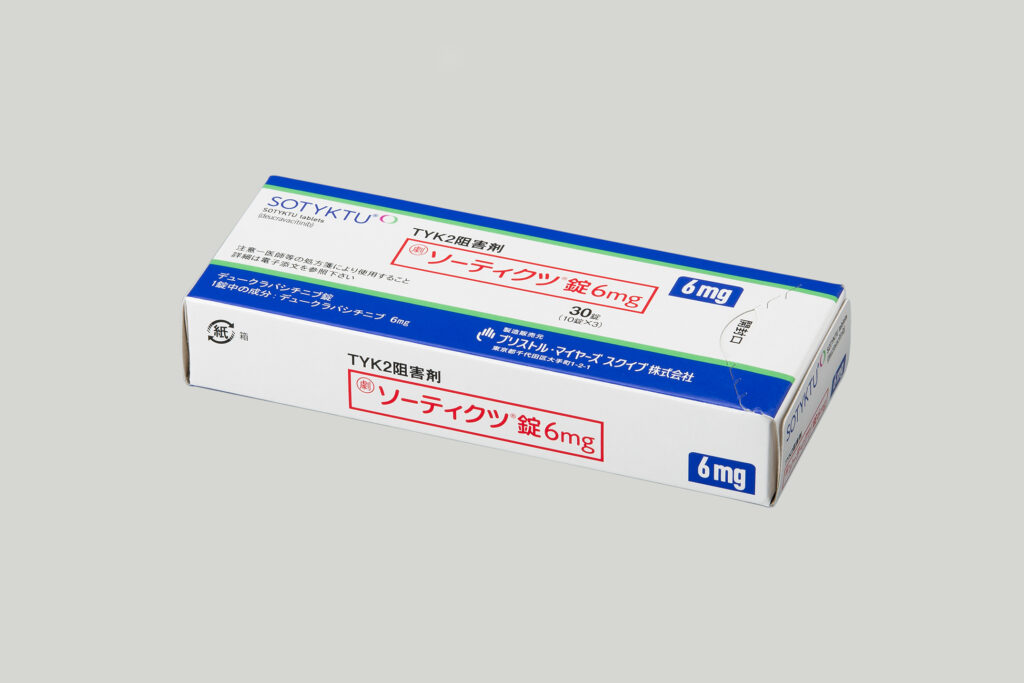 ソーティクツ(一般名:デュークラバシチニブ)は、乾癬の炎症に関わる免疫の“スイッチ”の一部を調整する内服薬(TYK2阻害薬)です